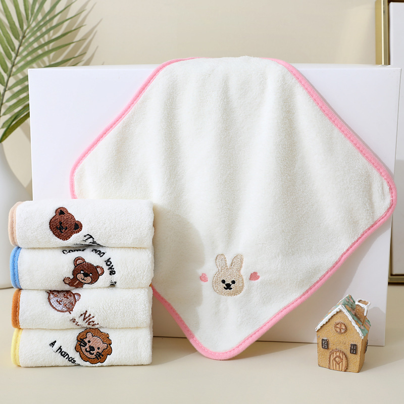 コーラルベルベットエッジスクエアタオル漫画クマ刺繍唾液タオル幼稚園ハンドタオル子供ベビー用品タオル