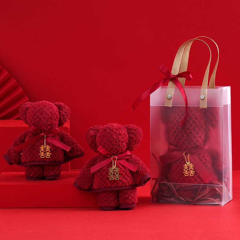 四角いタオル熊のお土産結婚慶幅リボン喜店喜糖満月誕生日プレゼント卸売り