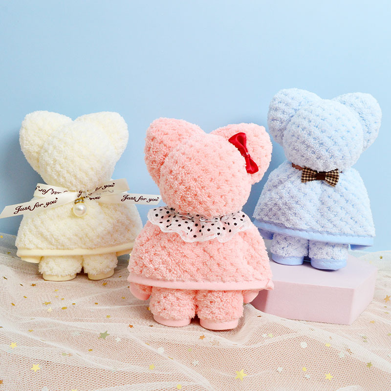 越境卸売タオル、ネット人気のお土産、うさぎ、くま、コーラルベルベット、結婚式の贈り物タオル、結婚式の花嫁介添人ギフト