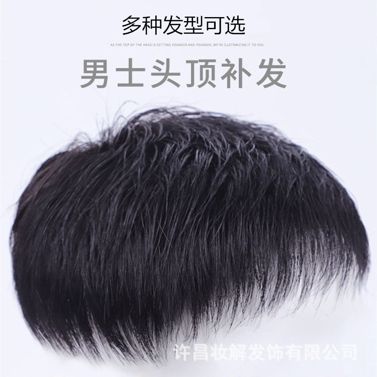 卸売り男性かつらの頭の上で髪の塊がはげている地中海男性の額が自然な髪のかつらを再発行する
