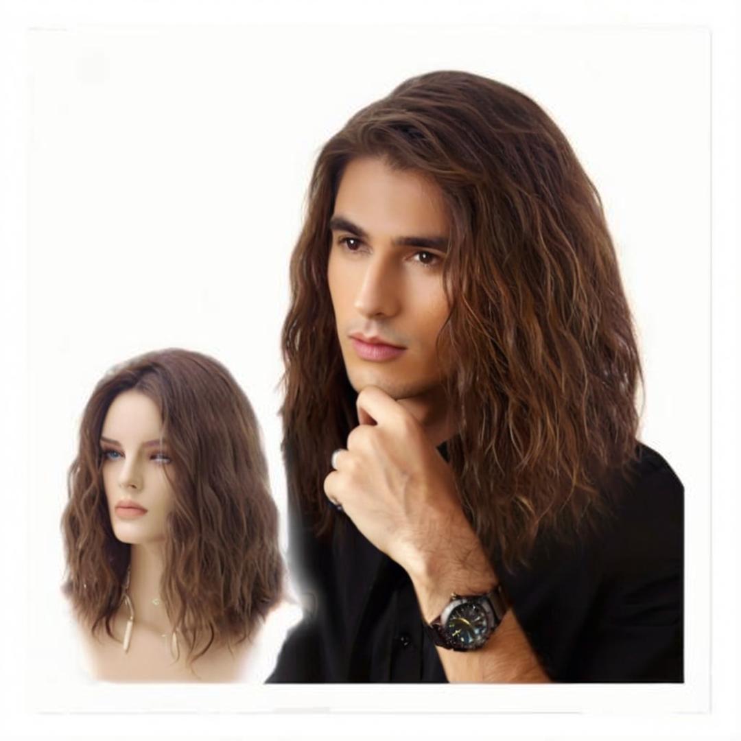 アマゾンの人気かつら70年代80年代のかつら男性の中長カールロック風化繊頭カバーwig