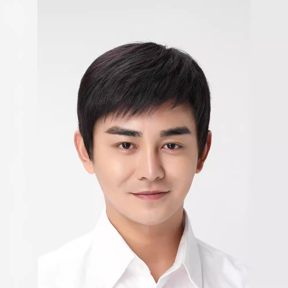 男性のかつらは短い直髪です。韓国版ファッション化繊の頭カバーはふわふわしています。