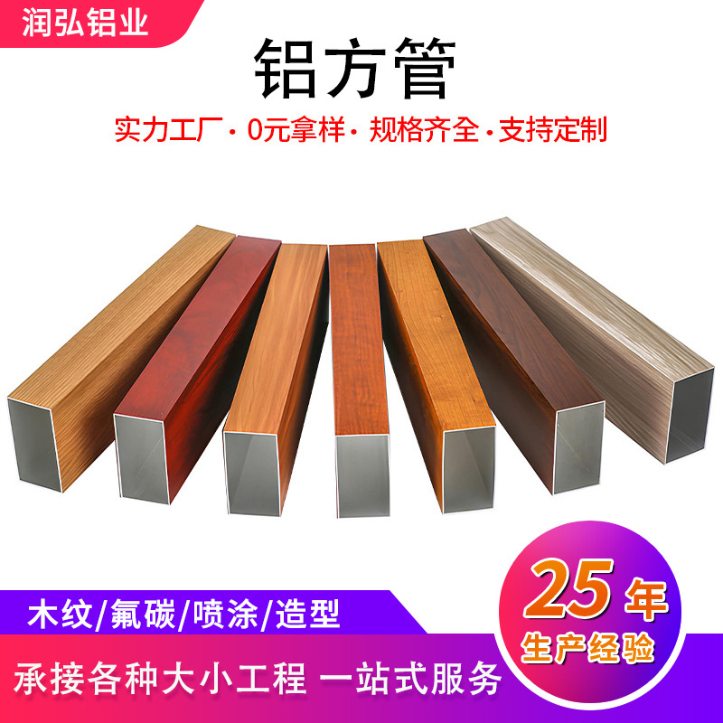 木目調アルミ角パイプ フッ素塗装装飾アルミ間仕切り天井材 アルミ角パイプ 曲線アルミ角パイプ