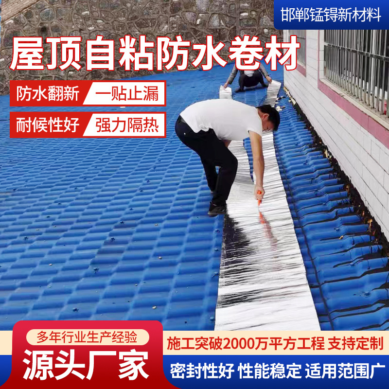 彩色鋼瓦自己接着防水コイル鉄皮房現場自己接着補充漏れ非火焼き高分子自己接着コイル材
