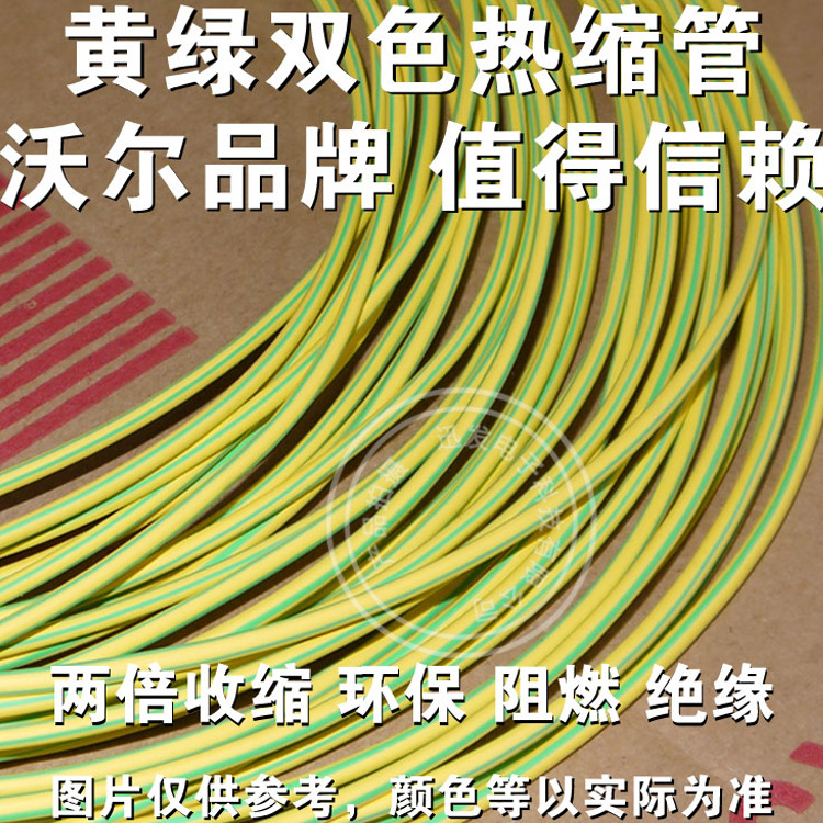 Woer/ヴォルヴォル黄緑熱収縮チューブ二倍収縮環境保護難燃ハーネスパイプ環境保護