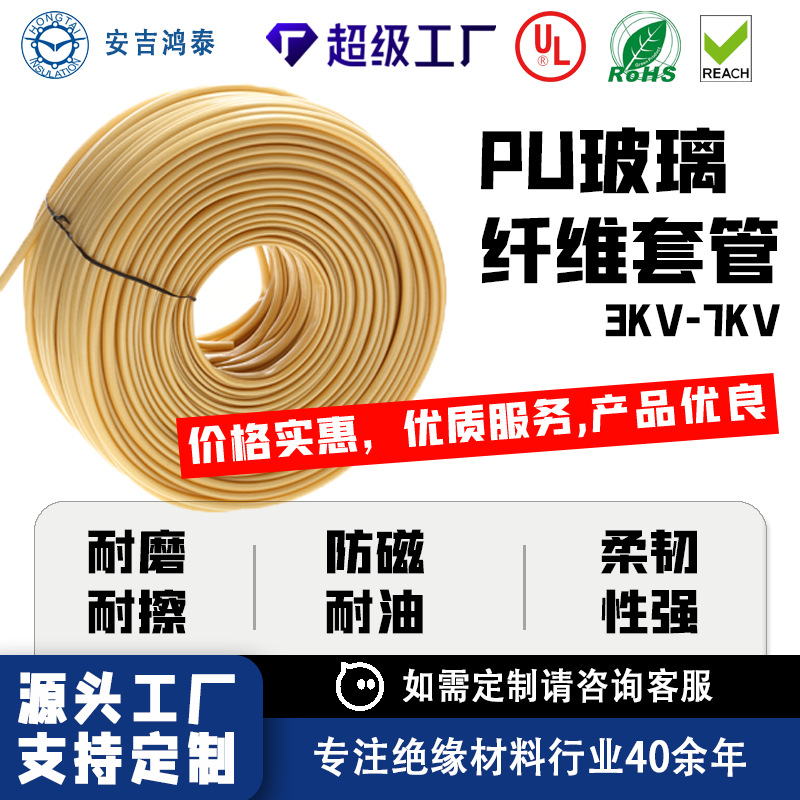 ポリウレタングラスファイバースリーブ耐熱耐磁性絶縁PUグラスファイバーチューブワイヤーケーブルハーネス絶縁スリーブ
