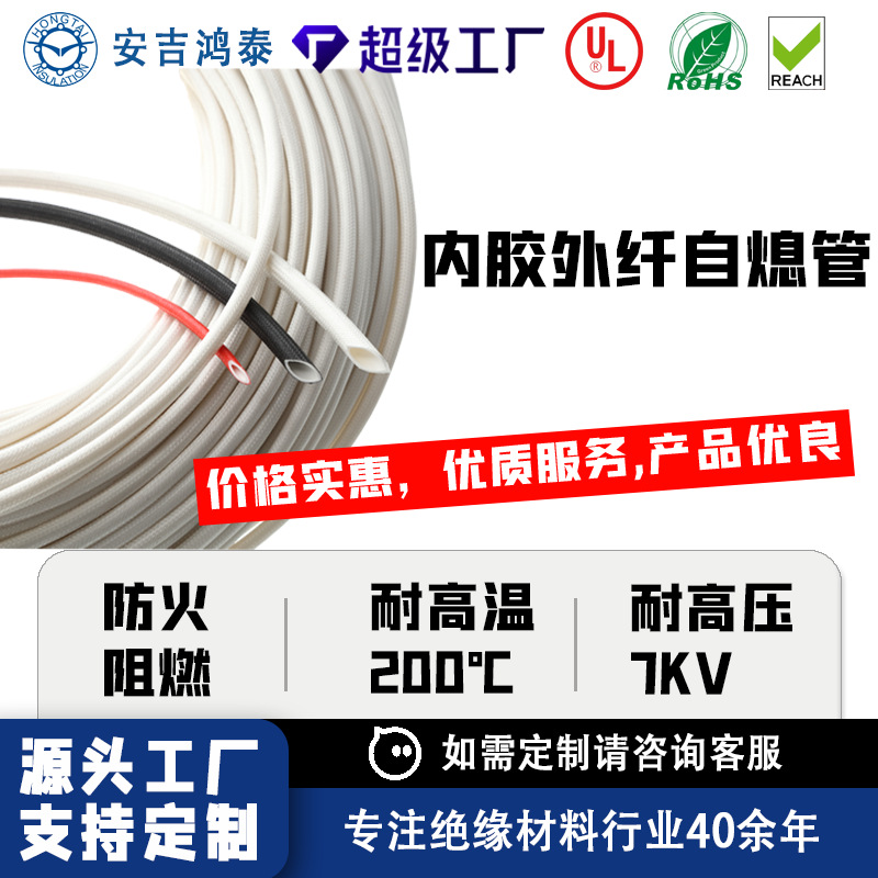 自動消灯ガラス繊維管ゴム付きガラス繊維管高温管外ゴム内繊維管難燃管