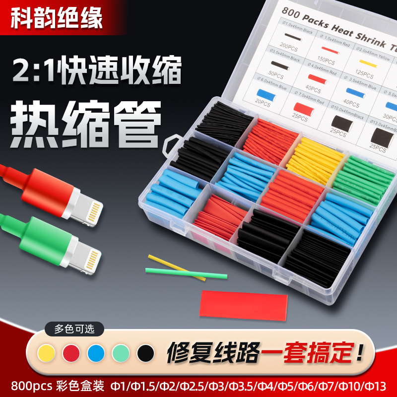 メーカー直販 熱収縮チューブ 多サイズ 柔軟性抜群 迅速収縮 800個入り カラフルボックス入り 熱収縮チューブ