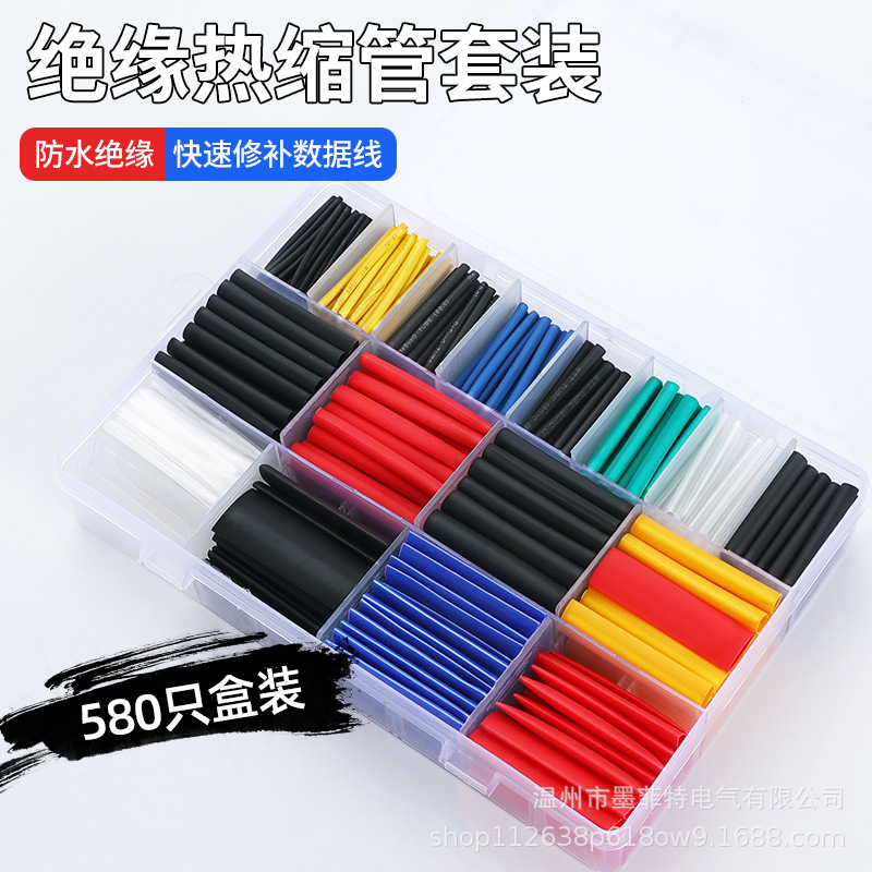 580pcsボックス環境保護熱収縮管カラー熱収縮管セット2倍収縮管電線保護修復管カバー