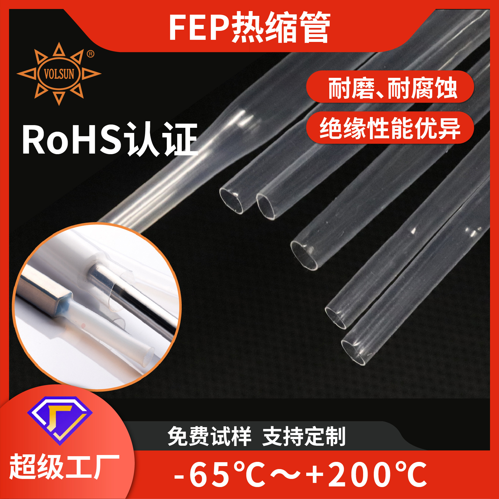 赤絶縁テフロンカラー熱収縮チューブ耐温難燃自動車タンク液位センサ熱収縮チューブ供給