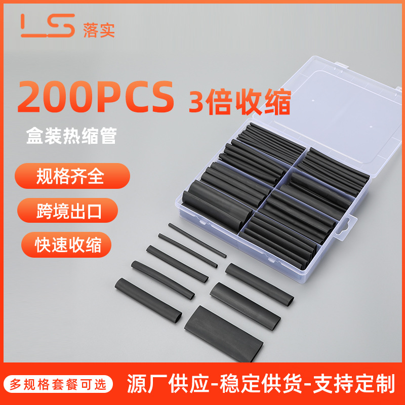 200pcs 3倍収縮厚さダブル壁管データ線保護カバー電線セットケース配線熱収縮管