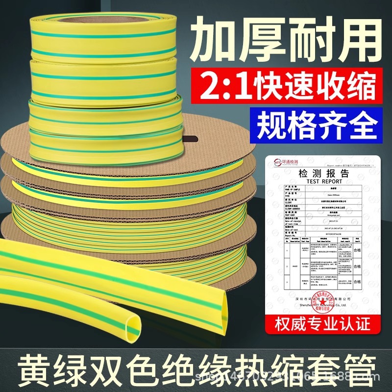 黄緑二色熱収縮管絶縁カバー厚さ収縮管電線保護カバー接地線標識2.5-120mm