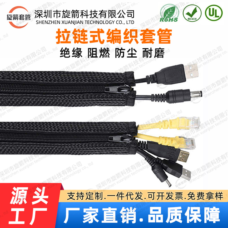 ジッパー付き編組スリーブ電線ケーブルコンピュータハーネス保護カバー難燃ナイロン蛇皮網管紡績スリーブ