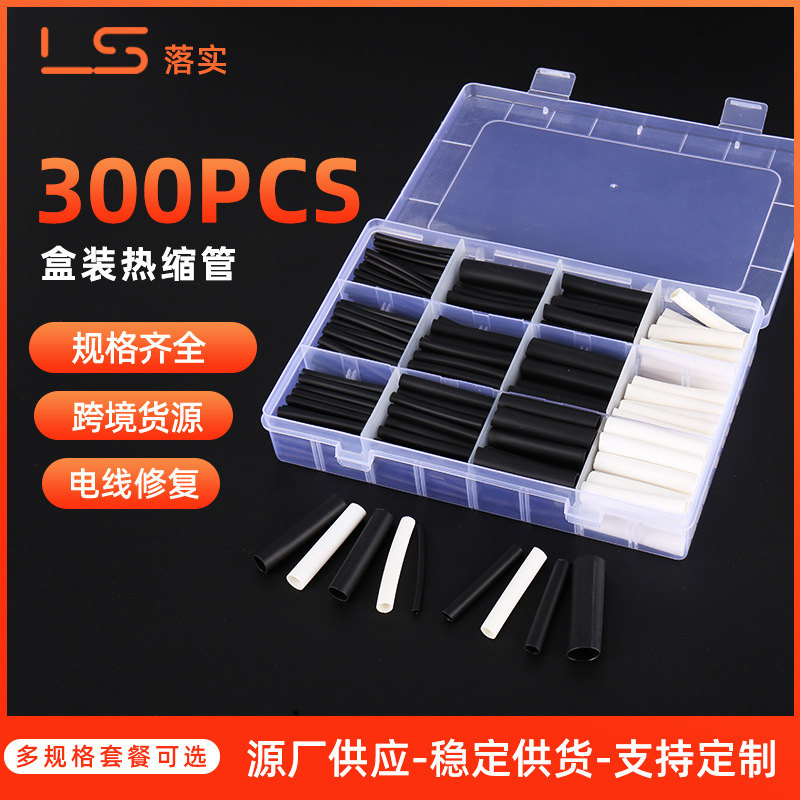 300ピースボックス热収缩チューブハロゲンフリー热収缩スリーブpeスリーブ热収缩チューブ2倍収缩ブラックホワイト热収缩チューブ