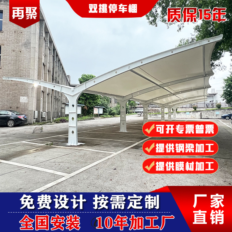钢膜结构停车棚篷充电桩动张拉布pvdf自行汽车顶景观防晒遮阳雨棚