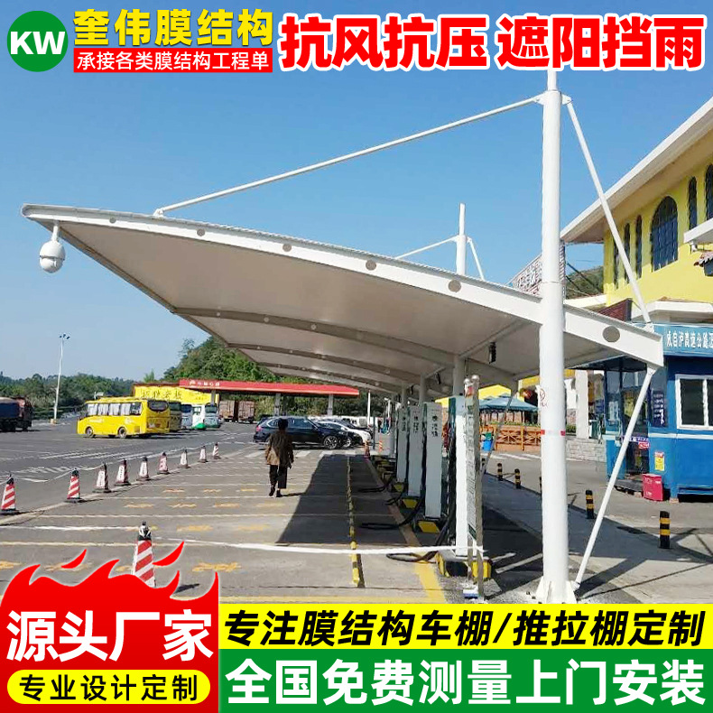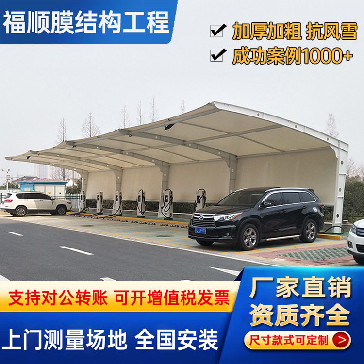 戸外電気自動車充電杭駐車棚日よけ膜構造充電所雨蓬区乗用車駐車テント