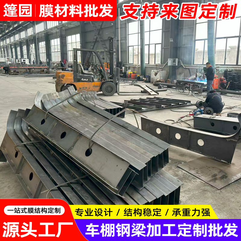 膜構造駐車小屋スチールビーム加工7型自転車キャノピービーム特殊形状電気自動車カー小屋スチールビーム加工