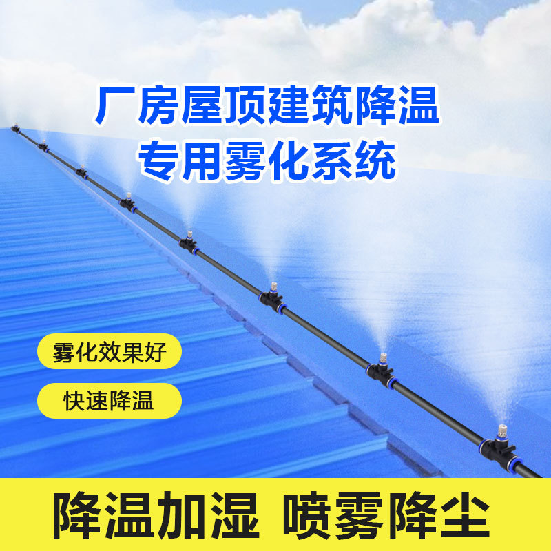 工場屋根冷却加工品、作業場スプレー加湿外機、水噴霧ノズル、除塵スプレー、マイクロスプレーシステム