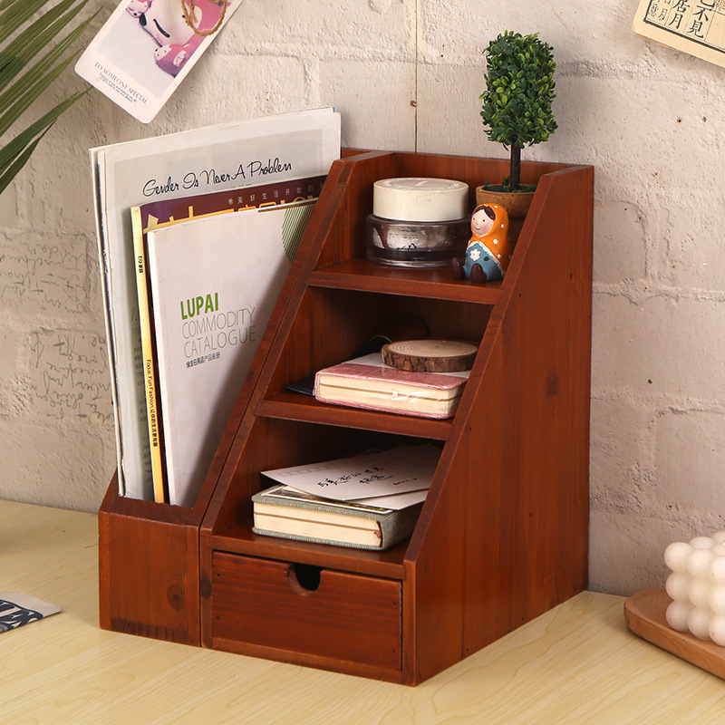 木の木のレトロな小さい本棚のデスクトップの物置棚の寮の机の収納箱の事務室のファイル棚の引き出し式