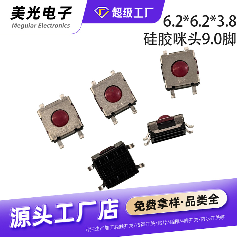 メーカー供給 6.2*6.2*3.8 シリコン防水マイクヘッド レッド 9.0 ピン パッチタイプ タッチスイッチ ボタンスイッチ