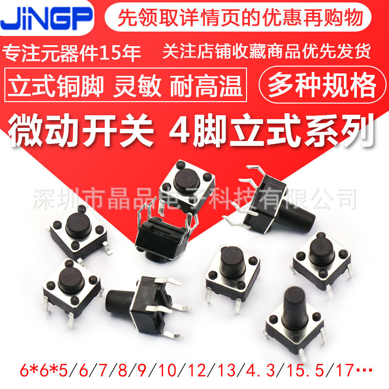 6 x6 x4.3/4.5/5/5.5/6/6.5/7/7.5/302足縦型ピンタッチボタンスイッチ中二