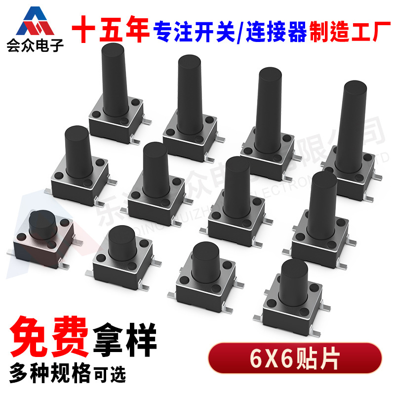 タッチスイッチパッチ6x6mm赤頭パッチ縦型ボタンスイッチ高寿命多規格メーカー卸売り