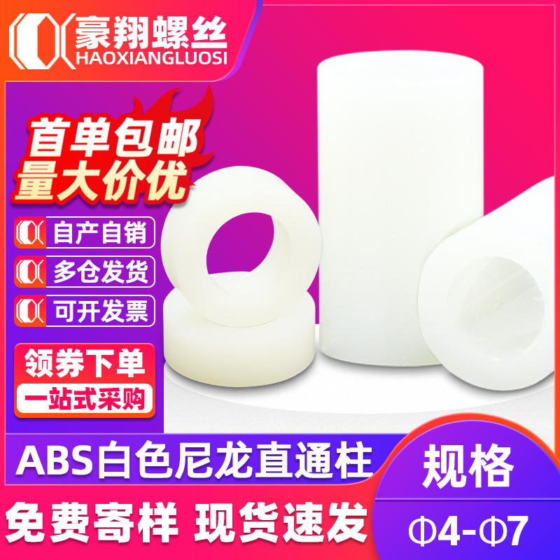ABS白色ナイロン製隔離柱、貫通穴付き円形中空柱、プラスチック製間隔柱、直通サポート柱、M3/M4
