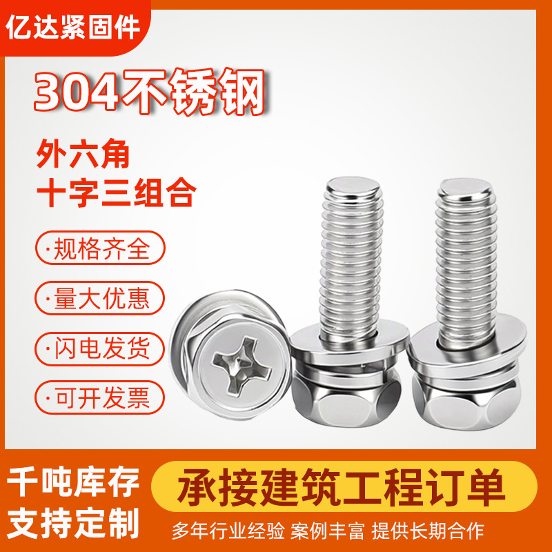外側六角十字三組み合わせネジ平座金304ステンレス鋼機械設備専用ファスナーセット