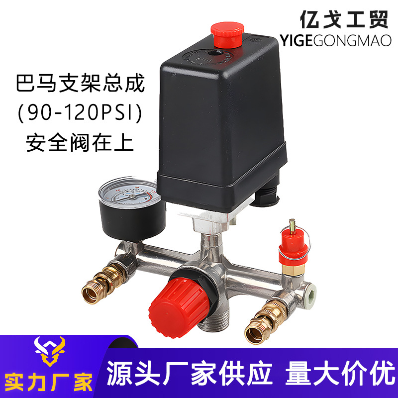 エアコンプレッサー部品 バマエアポート出口ブラケットアセンブリ シングルメーター安全弁 上部エアポンプ圧力スイッチコントローラー