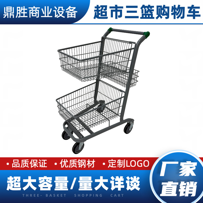 三層スーパーマーケットショッピングカート、二層手押し車、多層カート、多機能カート、家庭用買い物カート、収納カート、特大サイズ
