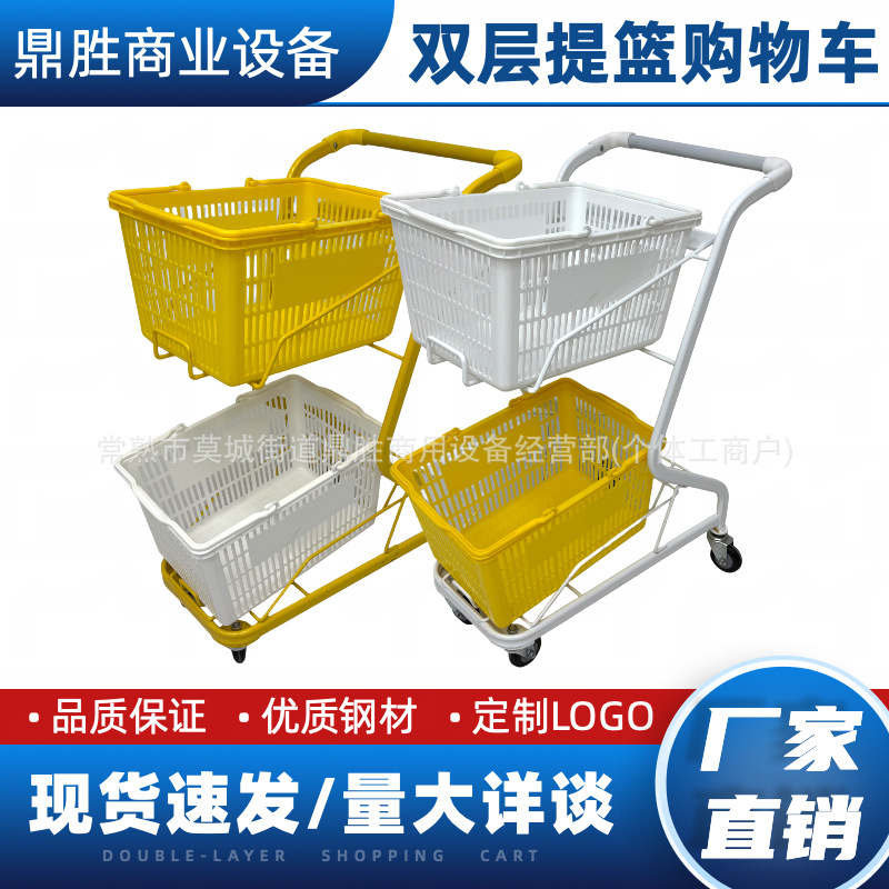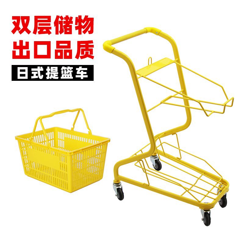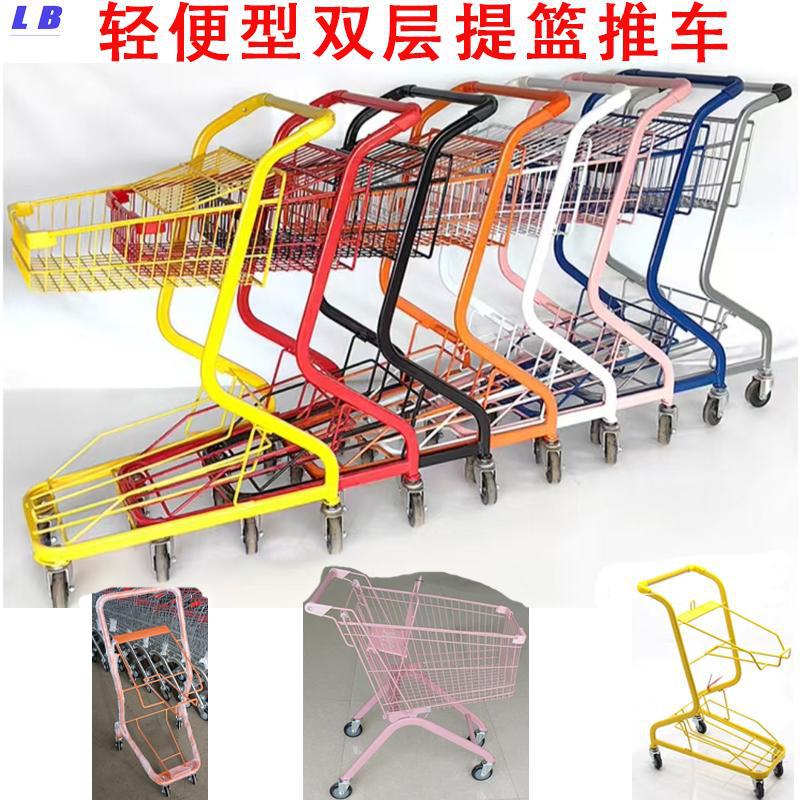 スーパーマーケットショッピングトロリー ktv インターネット有名人小型トロリーショッピングモールホーム二階建て屋台トロリー F7 バスケットパウダー