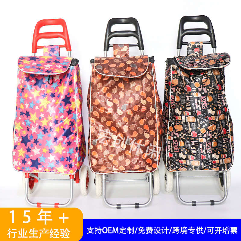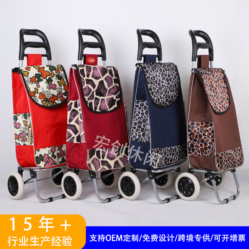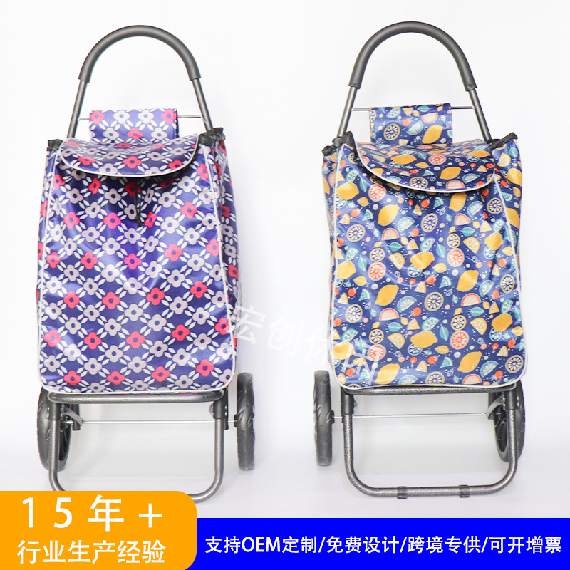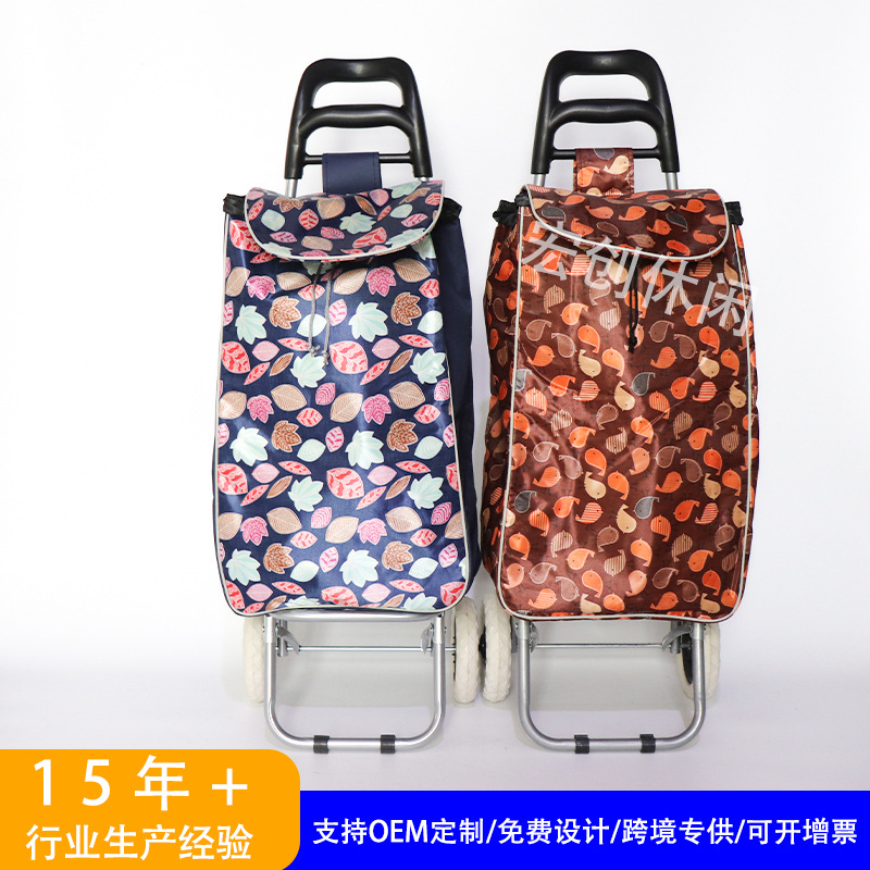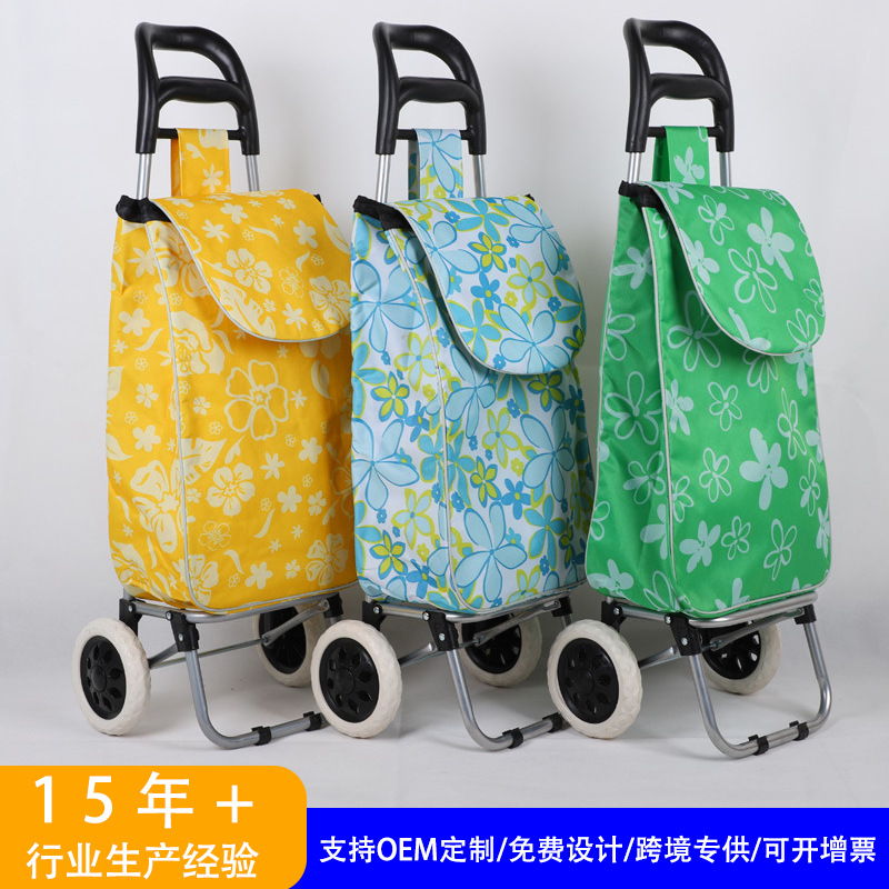 ソースメーカー直販牛頭スーパーマーケット折りたたみ食料品カートハイエンドポータブル軽量オックスフォード花柄ショッピングカートプロモーション