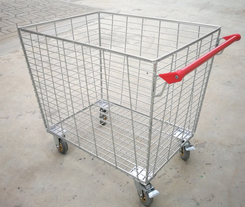 スーパーマーケットのショッピングカート倉庫大型理髪カート工場貨物トロリー金属メッシュバスケットカート物流ターンオーバーカート
