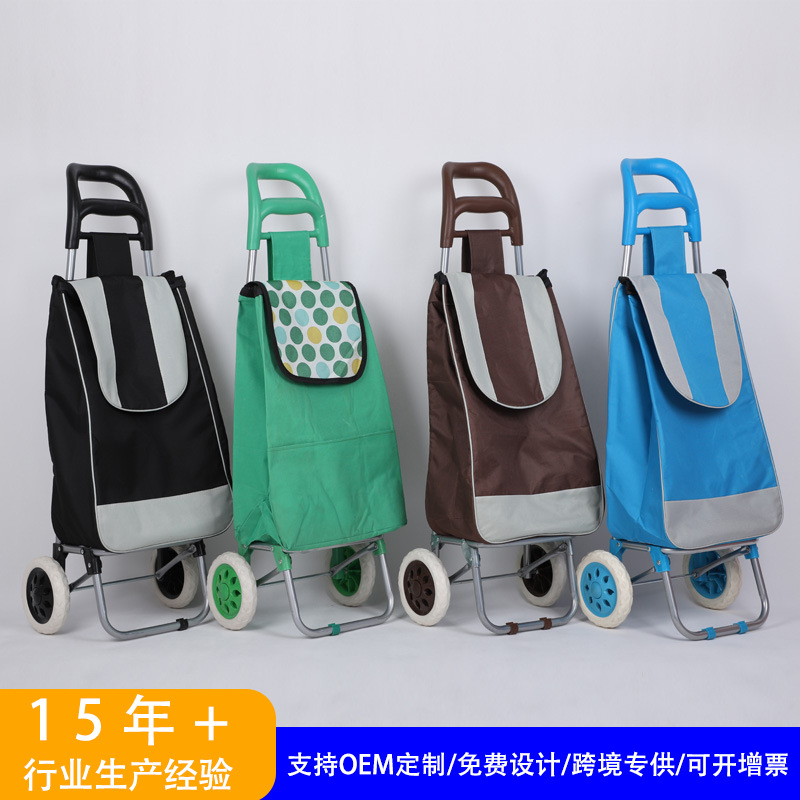 ソースファクトリーの人気の牛頭ポータブルショッピングカート無地オックスフォードスーパーマーケット折りたたみロゴ食料品ショッピングカート高齢者カート