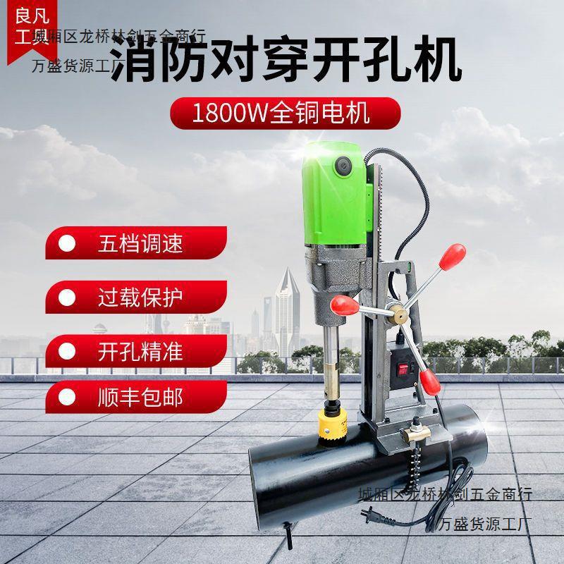 165型消防管道开孔机镀锌钢管打孔自锁链条 机械四通对穿孔垒德株