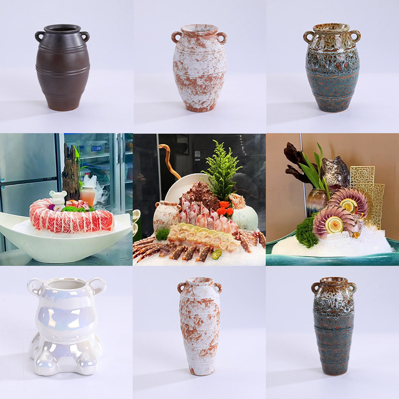 刺身盛り合わせ装飾ドライアイスボトルセラミックボトルシーフードドライアイス小ポット和風プレート装飾