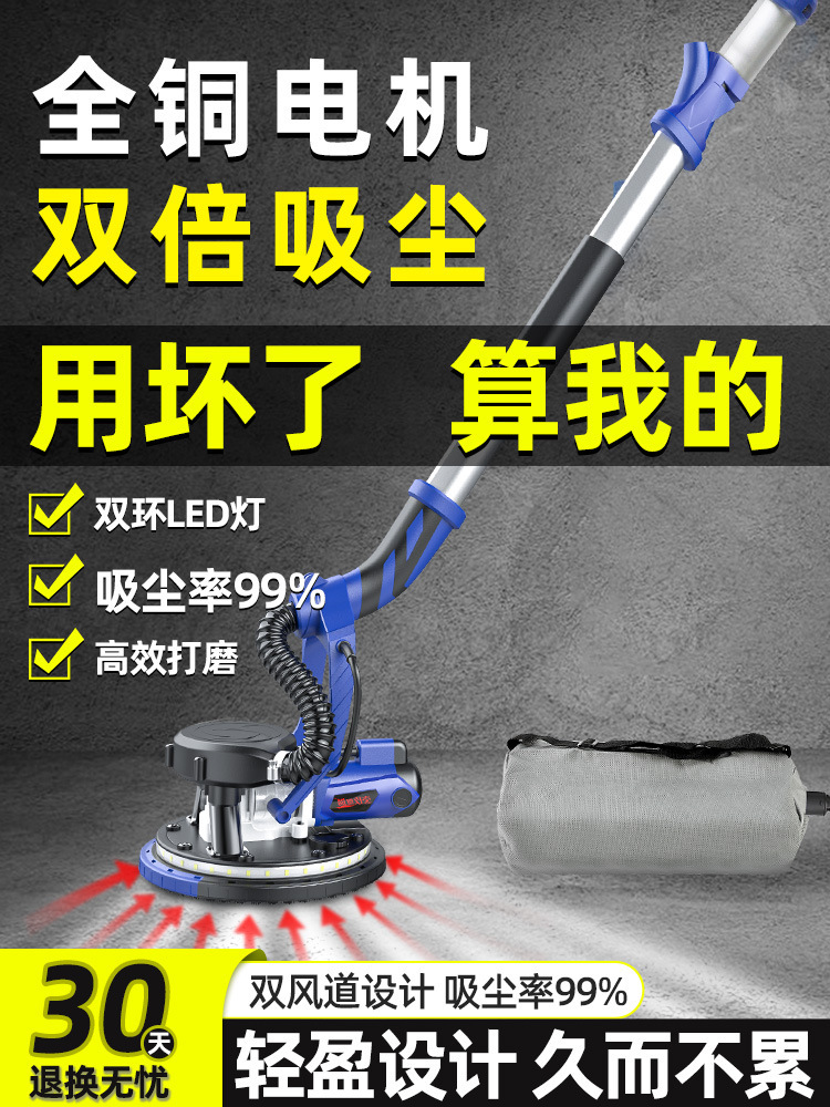 无刷墙面打磨机无尘腻子砂纸机多功能电动自吸墙壁抛光磨墙垒德株