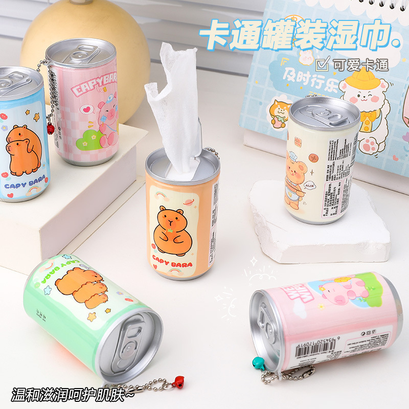 クリエイティブ漫画の小さなバケツのミニウェットティッシュ携帯型子供用ウェットティッシュのバケツには、コーラ缶のウェットティッシュが入っています