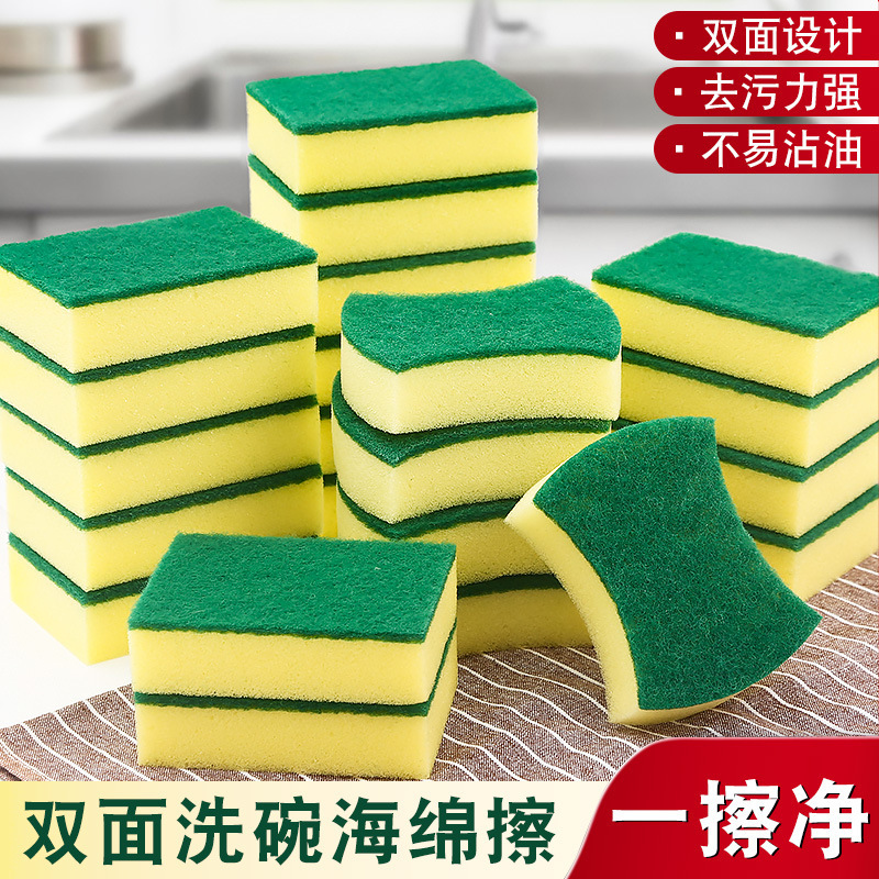 家庭用の清潔なスポンジは厚くて高密度な両面の台所を拭いて食器を洗います。