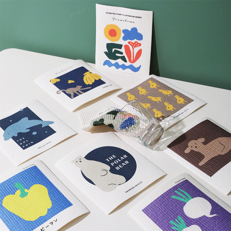 圧縮木材パルプ綿雑巾、糸くずが出ず、油汚れがつきにくい、かわいい漫画の掃除用吸収性ふきん、キッチンたわし