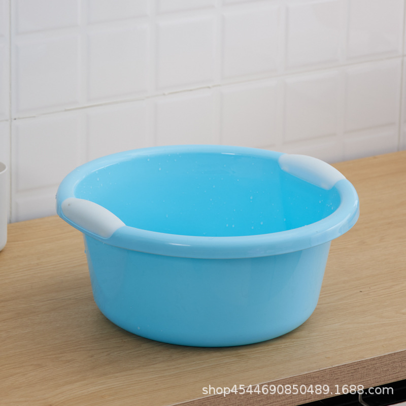 赤い皿洗いブラシスポンジは浴室の台所の家事を拭きます。