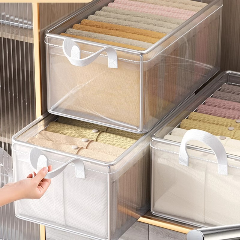 衣類収納ボックス寝室大容量透明折りたたみ階層整理ボックスワードローブ服多機能収納バスケット