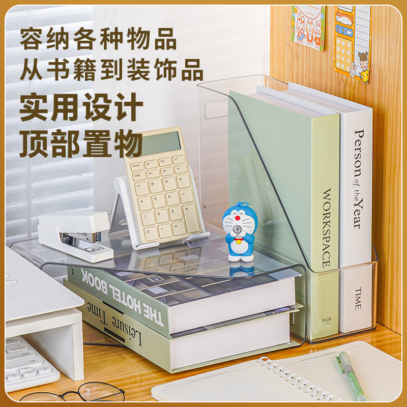 ファイルデスクトップ収納ボックス透明厚手寮デスク文房具本棚大容量オフィスボックス