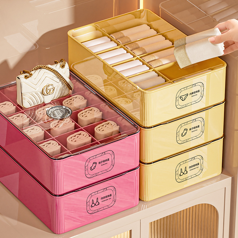 下着と靴下の収納ボックス、下着収納ボックス、蓋付きスリーインワンプラスチック家庭用アーティファクト、ワードローブ、寝室のコンパートメント