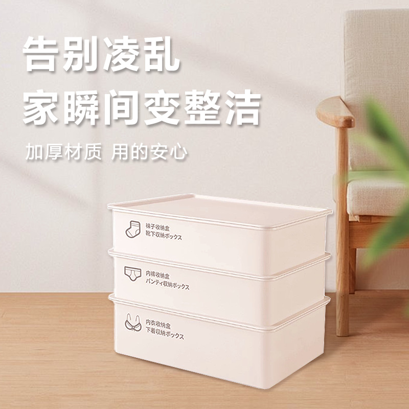 家庭用無地高価値積み重ね収納ボックス寮下着下着靴下スリーインワン下着収納ボックス蓋付き