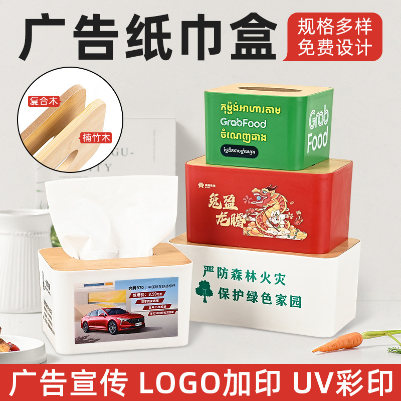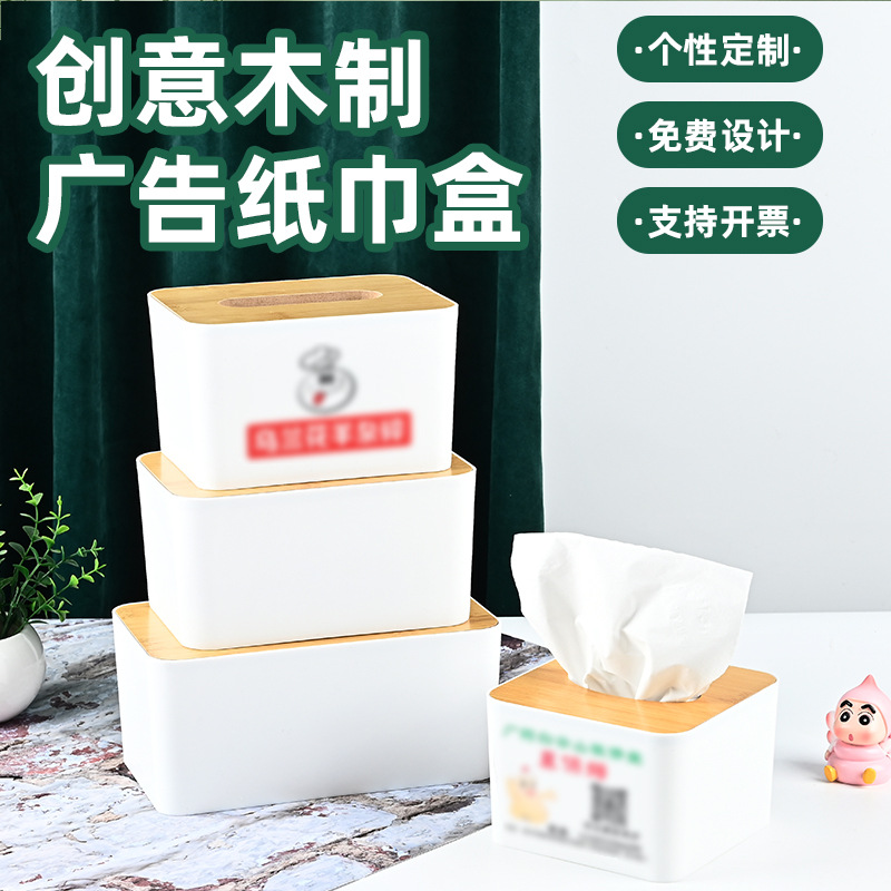 クリエイティブプラスチック木蓋ティッシュボックスロゴ広告木製引き出し紙箱多機能商用印字卸売り