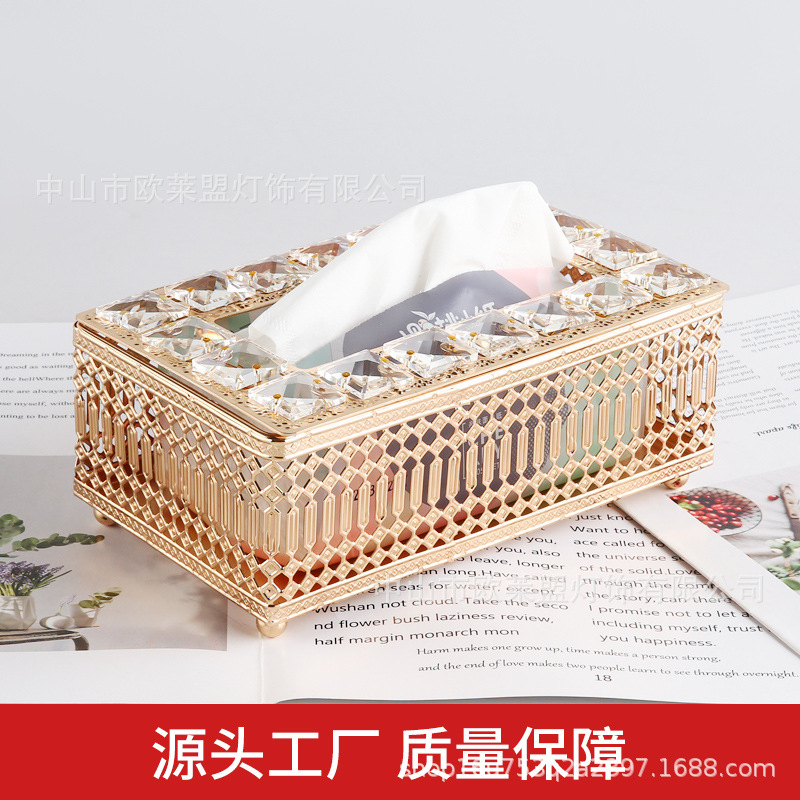 ヨーロッパ式鉄芸水晶ティッシュボックスのデスクトップの茶何ktvは紙の箱の家庭の柔らかい装飾の置物を引き出します。