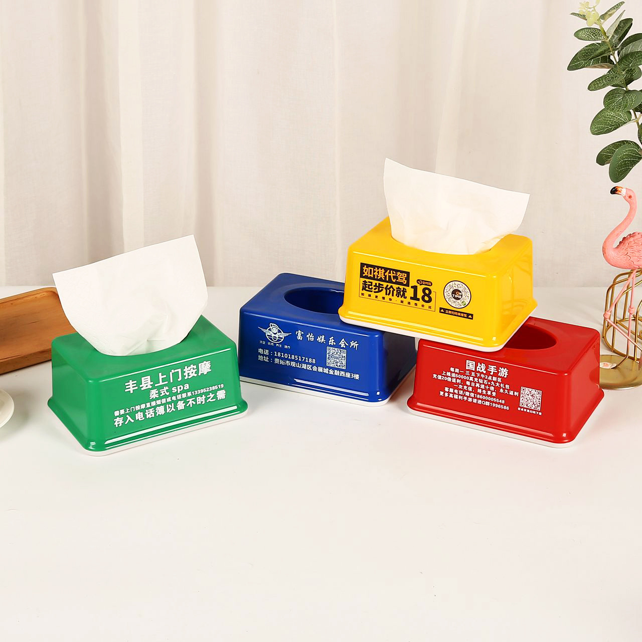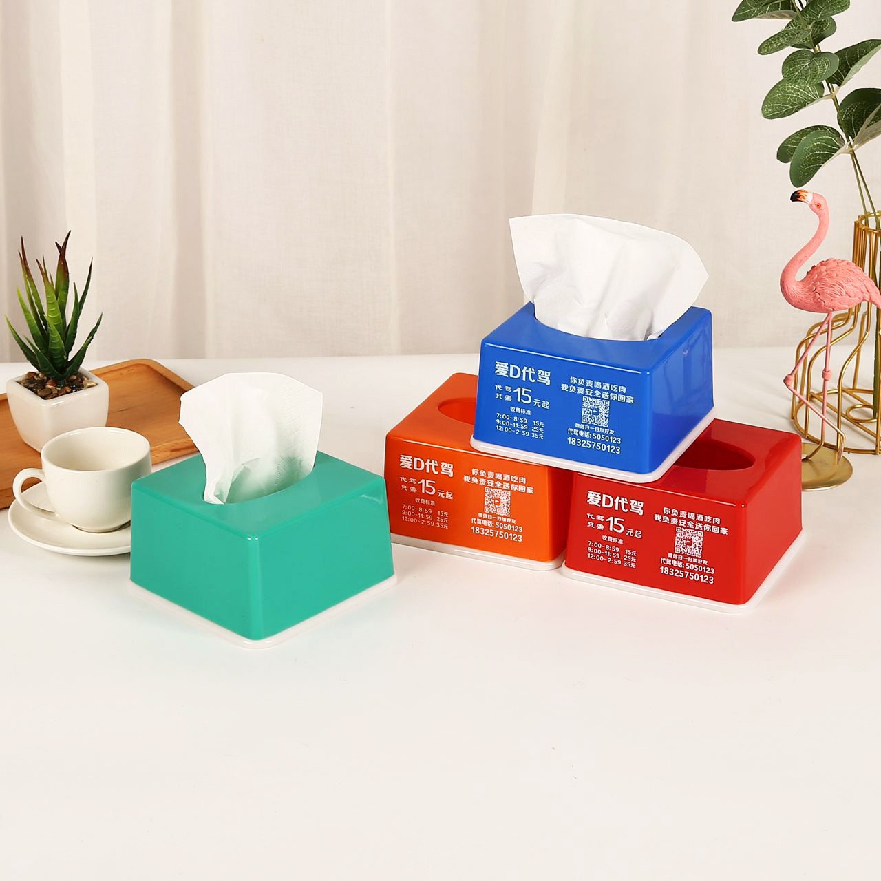 宣伝広告ティッシュボックスカスタムロゴプラスチック製の紙箱ホテル注文ナプキン紙箱印刷ロゴ