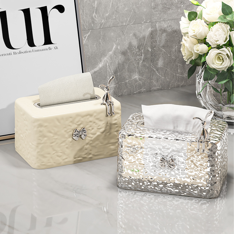 高颜値クリーム风ティッシュボックスウサギ装饰リビングルームテレビデスクトップティッシュボックストイレティッシュボックス