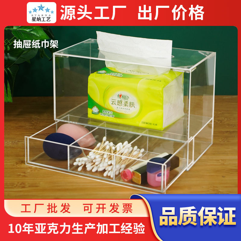 メーカー透明ティッシュボックス収納引き出し付きアクリル長方形化粧品文房具引き出し紙箱アマゾン